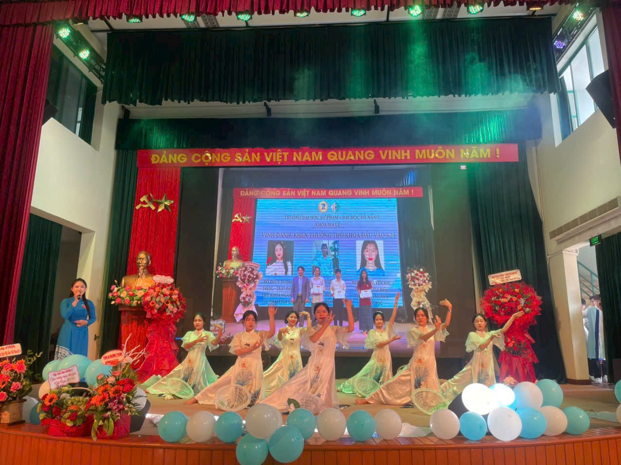 Trong buổi lễ, nhiều hoạt động có ý nghĩa được diễn ra trang trọng và ấm cúng như Lễ tuyên dương sinh viên có thành tích nghiên cứu khoa học, sinh viên 5 tốt cấp Đại học Đà Nẵng, sinh viên có thành tích xuất sắc trong hoạt động Liên chi đoàn,… Và đặc biệt là sự bùng nổ về cảm xúc với chương trình Văn nghệ “Giai điệu tuổi trẻ” với sự tham gia của 8 tiết mục từ 8 chi đoàn trong Khoa Địa lí. Các tiết mục được đầu tư công phu, đem đến cho người xem nhiều cung bậc cảm xúc ấn tượng.